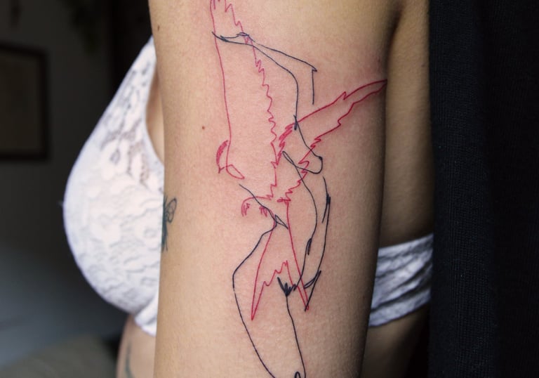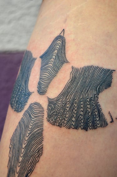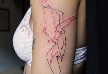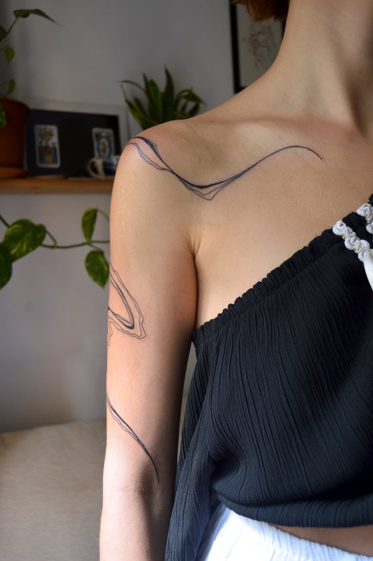 Mi tatuaje es lineal y delicado. En mis diseños busco la armonía y la fluidez del trazo, que en ocasiones combino con la complejidad. Son piezas únicas creadas especialmente para ti.